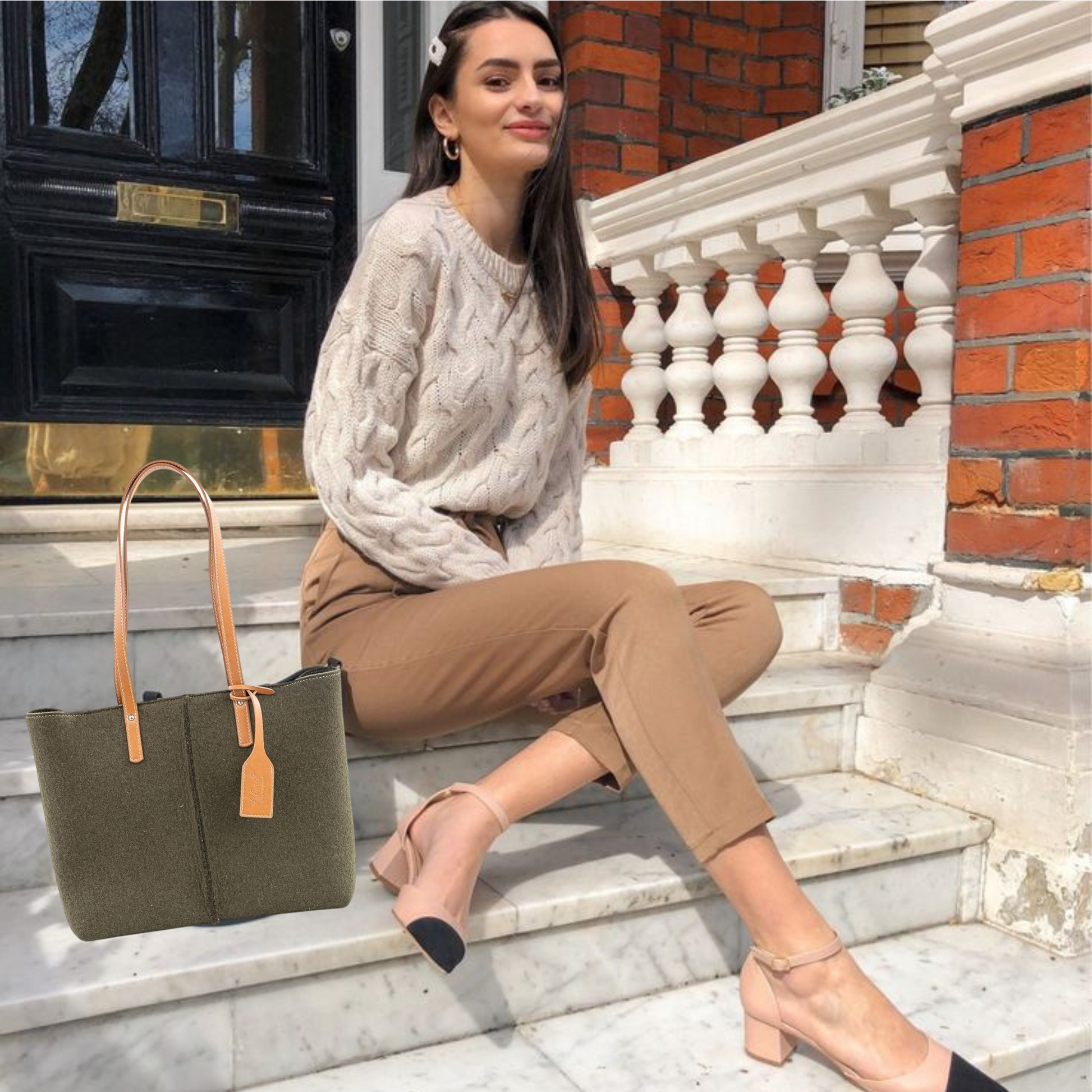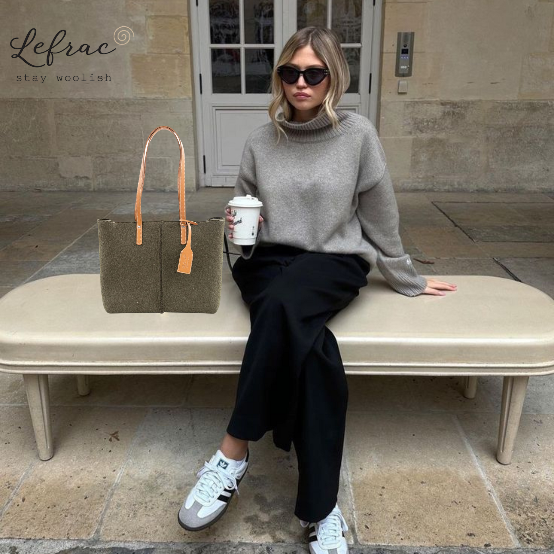 Made of high quality Merino wool felt (lighter, sturdier and more sustainable than leather) and with vegan leather made from organic material, our tote, thanks to the two internal magnetic buttons and a large opening, makes it easy to get things in and out on the go and to keep the most precious objects safe thanks to two large internal pockets.